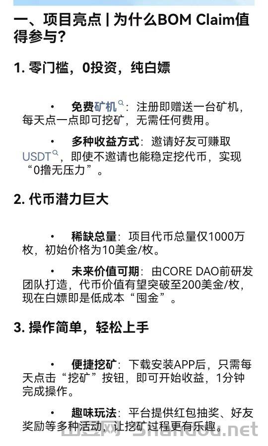 零撸Bom,免费挖矿产出,一个吃肉的项目