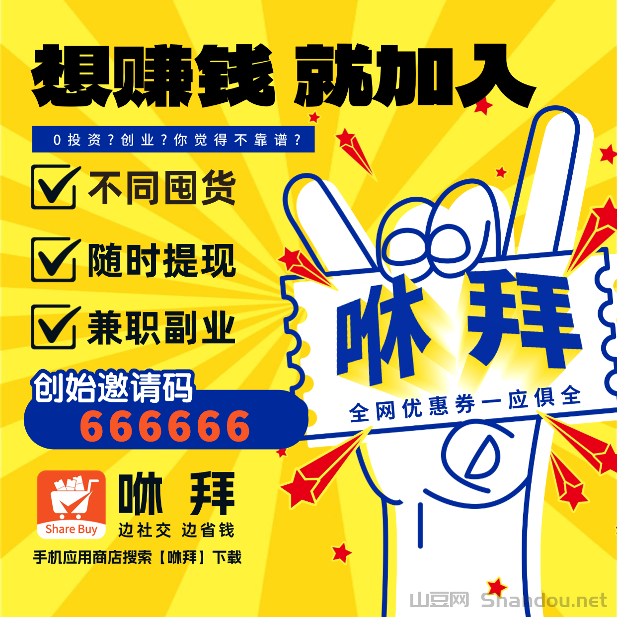 咻拜是智能网购导购平台,对接了淘宝、京东、拼多多、抖音等多个主流电商平台。登录后能领这些平台的内部优惠券。分享优惠券给好友,好友购物,你就能得佣金。自己用券购物,也能享折扣。