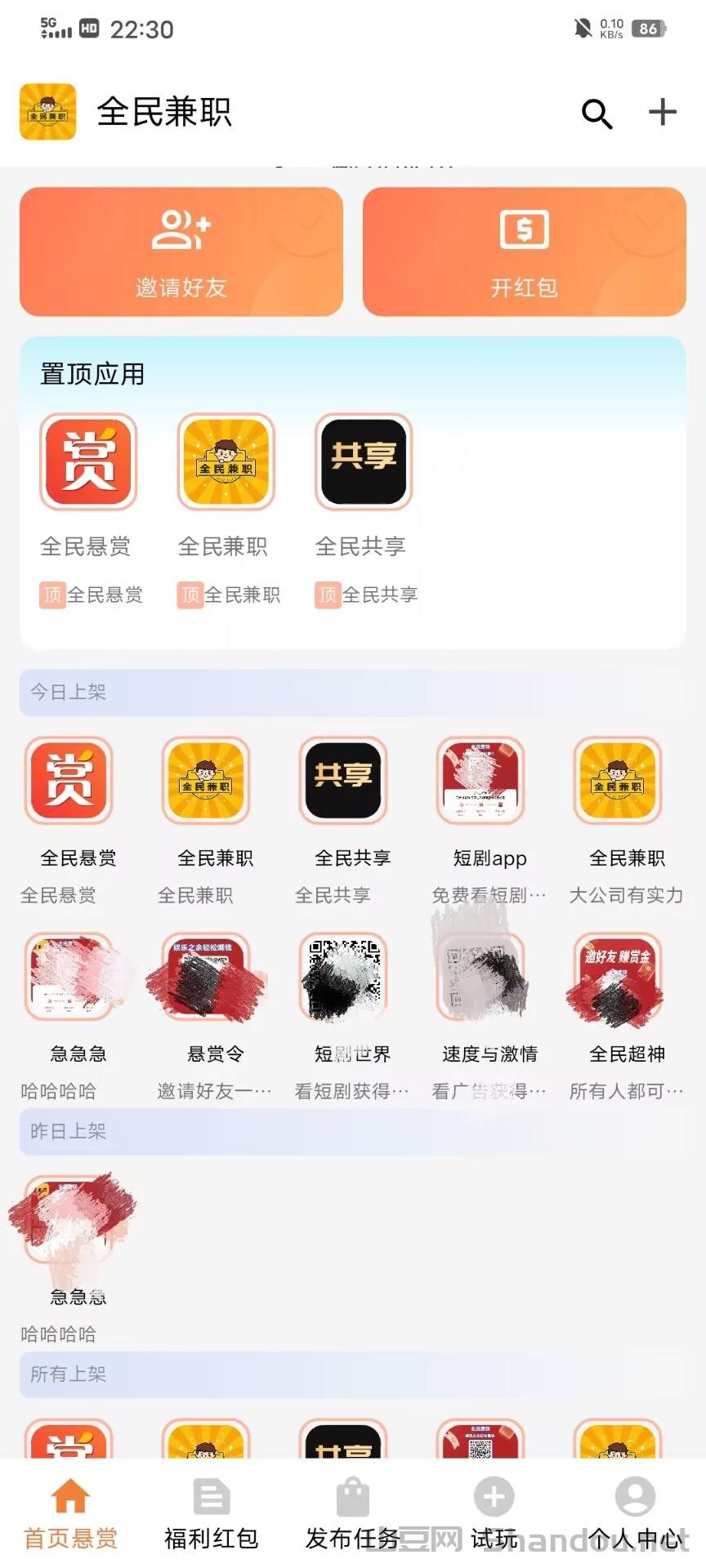 上线五款数据互通子app!单个app有保底可撸3~5。还有悬赏任务和游戏试玩收益无上限!