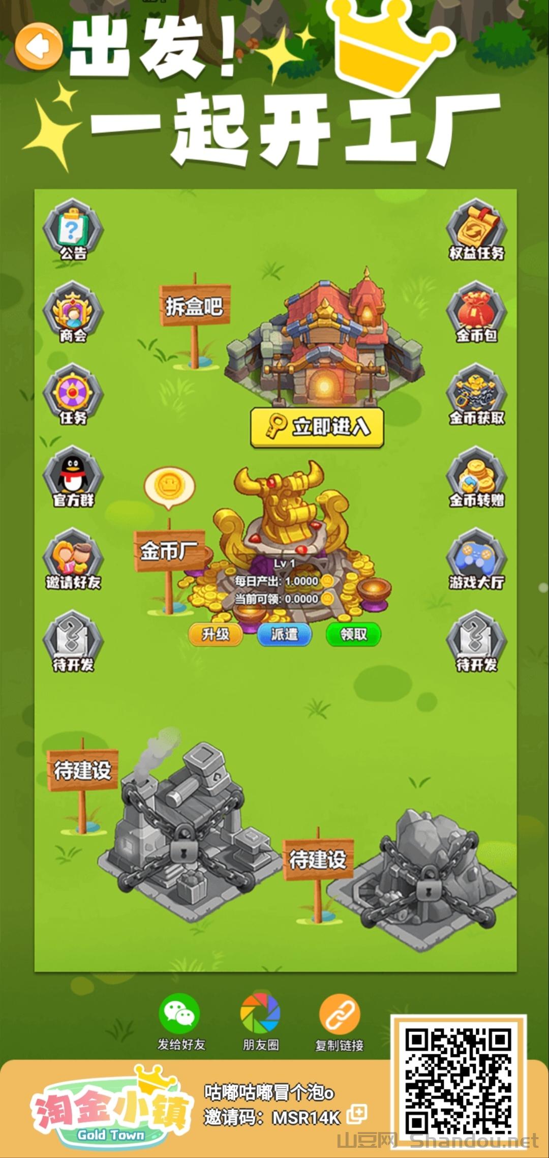 每日邀请好友累计拿3金币,下级首次升级工厂拿5金币!