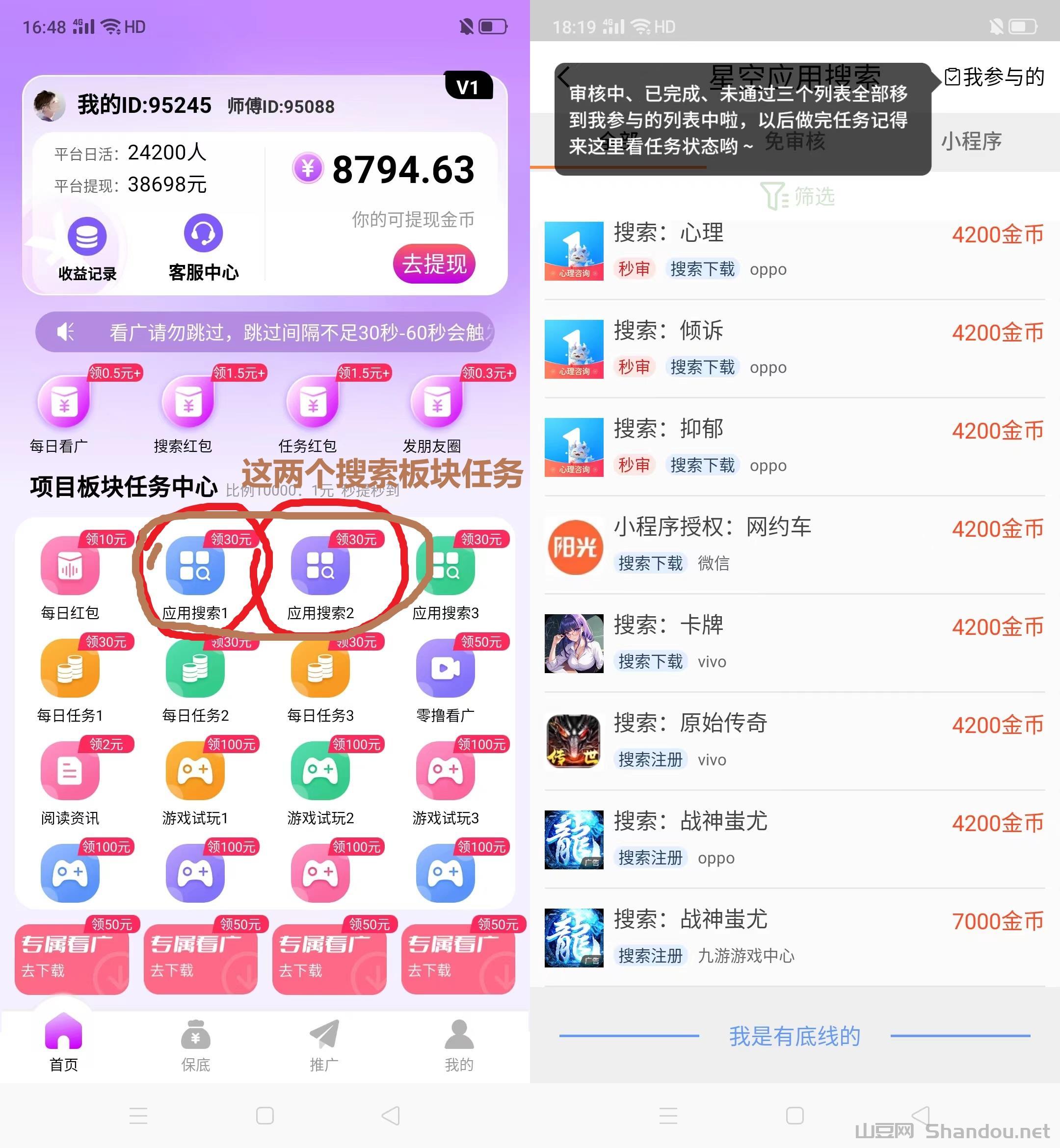 这里主打搜索赚任务下载,因为搜索赚操作简单,每天都都可以重复做,今天做完卸载,第二天又可以继续做,