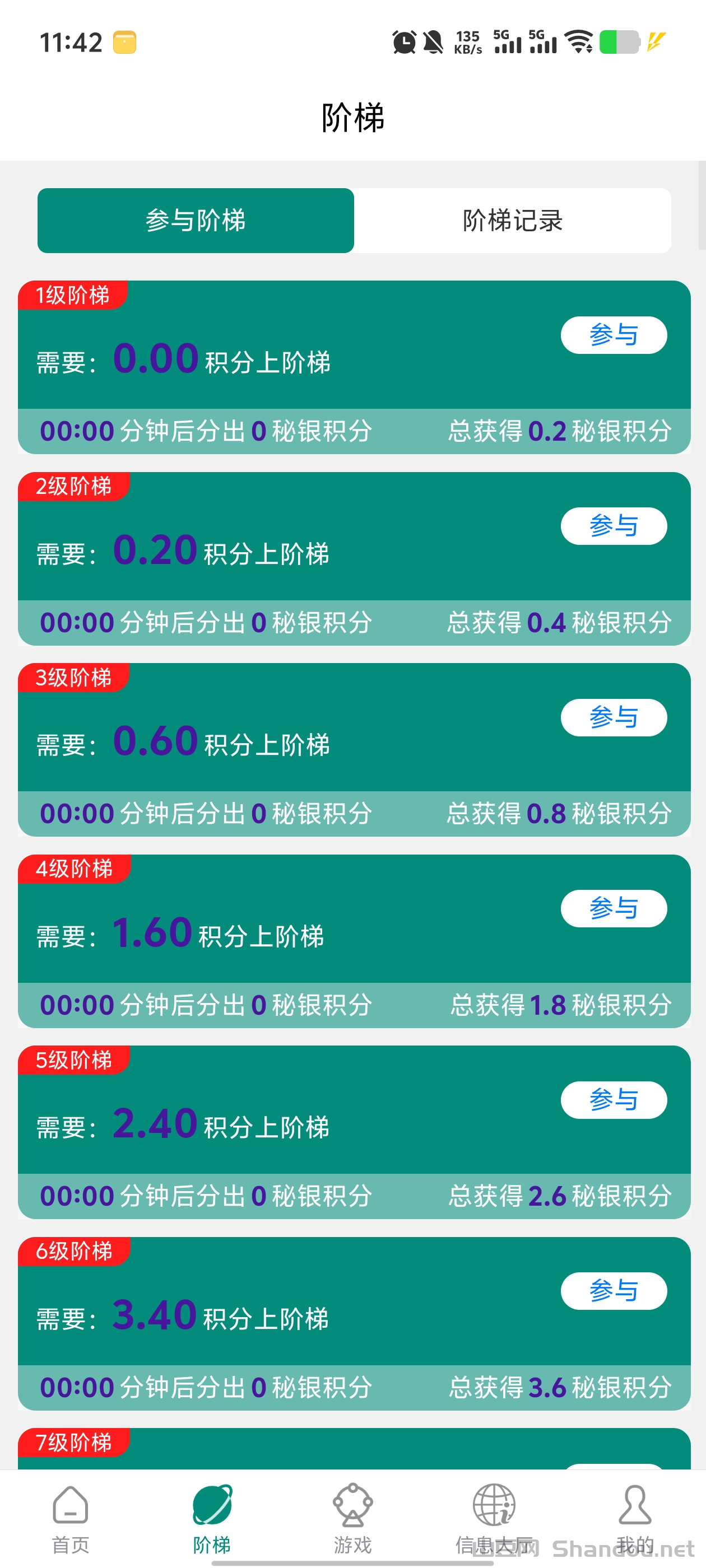 《闲赚无忧》爬楼模式,每天签到爬楼撸积分,1个积分2.5米,每天上涨