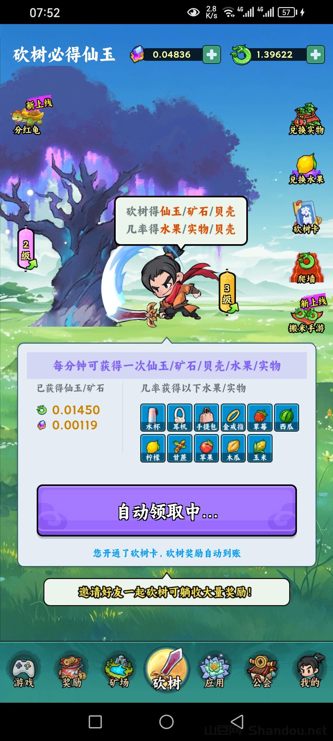 邀好友给零钱,可提取或1比1兑换仙玉,多种玩法[砍树/爬墙/搬砖/战场/养龟/淘金],让你玩的爽。