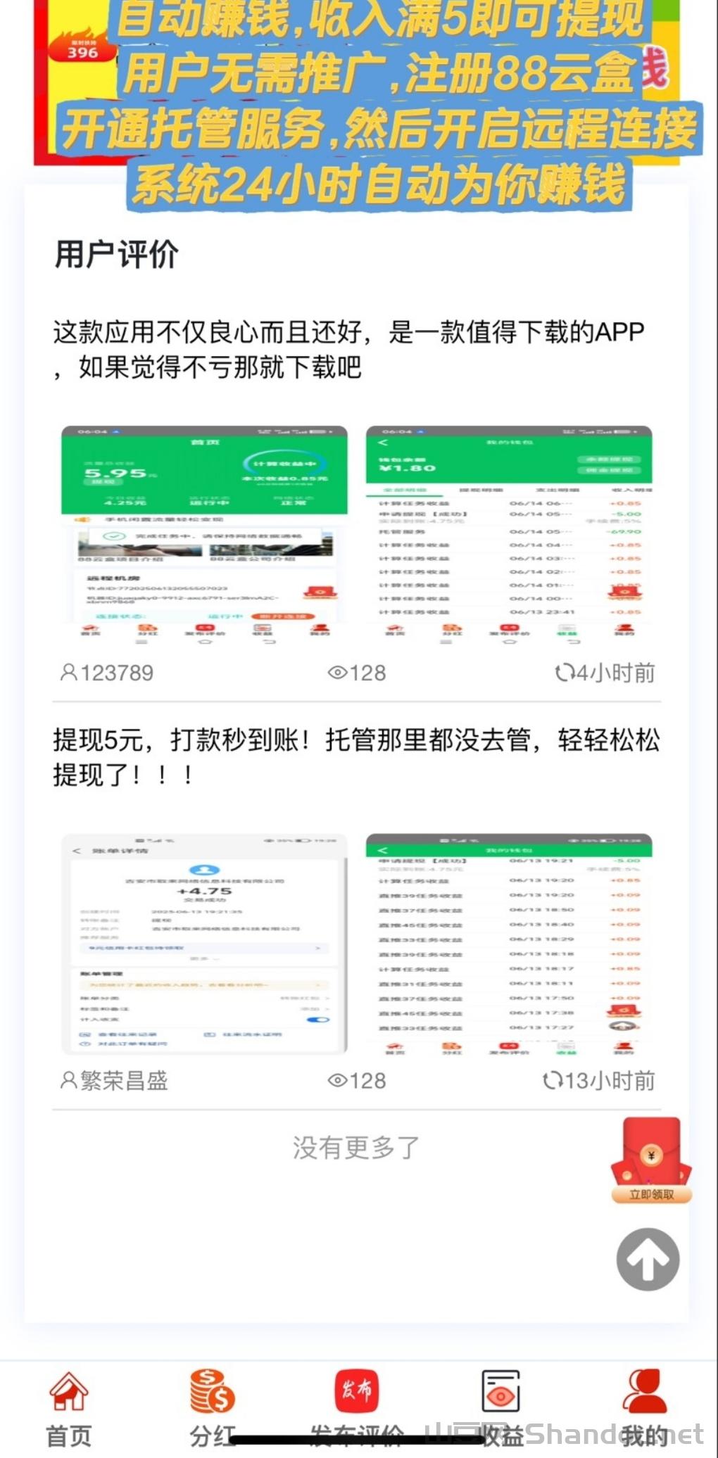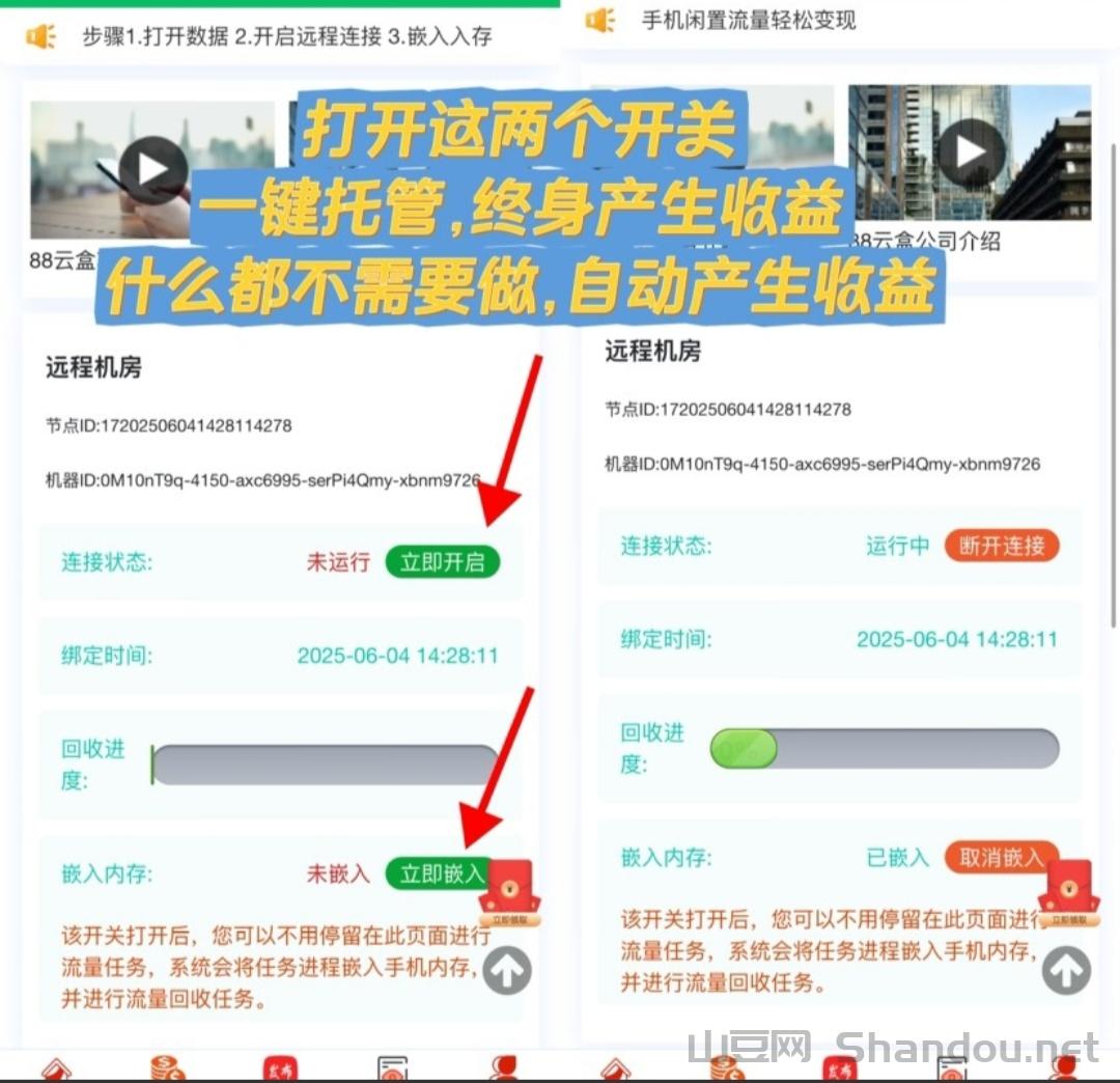 2025宝妈,学生党,打工仔逆袭重磅项目 诺云数智(香港)科技有限公司全新研发88云盒系统,手机只要联网通过app连接终端云盒共享网络云服务进行闲置流量回收。 一台手机就是一台CDN节点加速器,88云盒分布节点众多、构建遍布全球的数据存储和计算的网络集群,为其他企业提供加速增值服务。加入88云盒,来者人人赚钱,只需手机打开数据或wiff开启远程连接云盒,自动赚钱,收入满5即可提现。用户无需推广,注册88云盒,开通托管服务,然后开启远程连接,系统24小时自动为你赚钱,不用找一个人月赚600+。加入88云盒,人人都能赚钱。合法稳定,赚钱快,赚钱多、赚钱久!全力以赴运作几个月时间。月收入过万,每天工资持续增长,提现秒到帐。