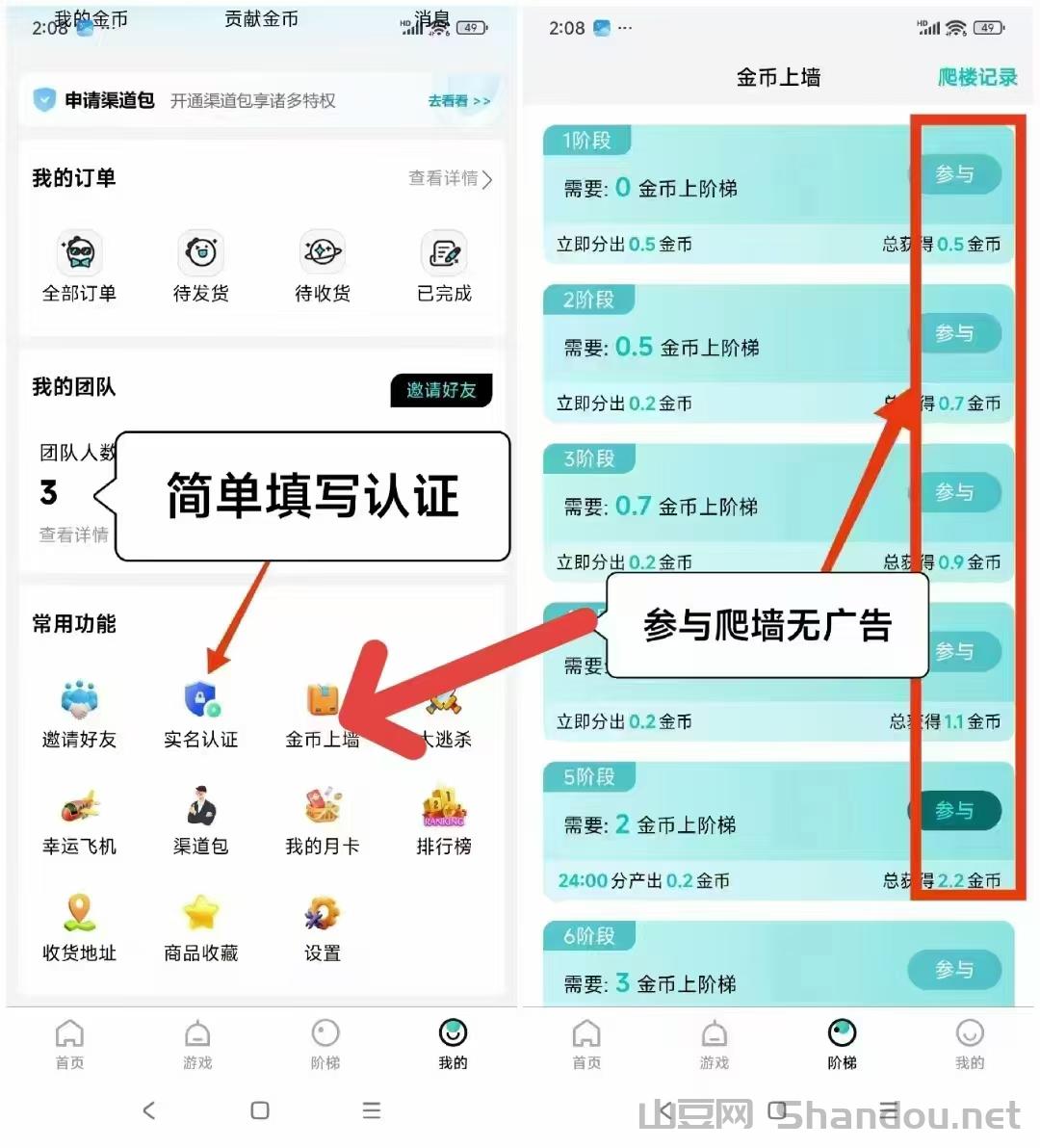 第二步:点击阶梯,进行爬楼即可,爬楼越高菳币越多