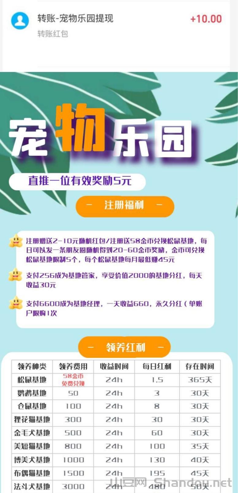 宠物乐园'致力于打造动物生态平台 2025最具价值项目——宠物乐园低门槛,直推一位有效用户最低奖励12.5元,免费出码即可分享,推广无线代佣金注册可兑换3只松鼠 目前不删档内测中 注册送2-10元 速度锁粉了