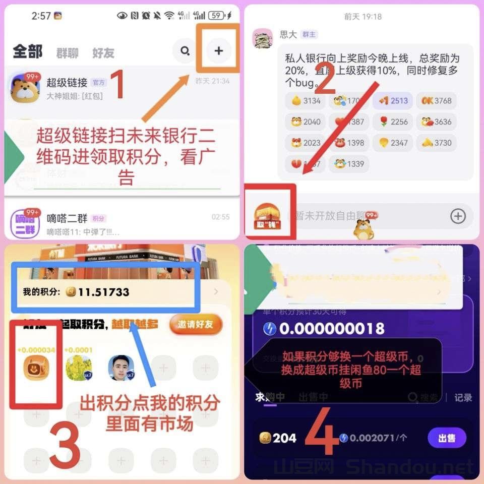 之前玩过超级链接直接进未来银行积分群也送100积分!