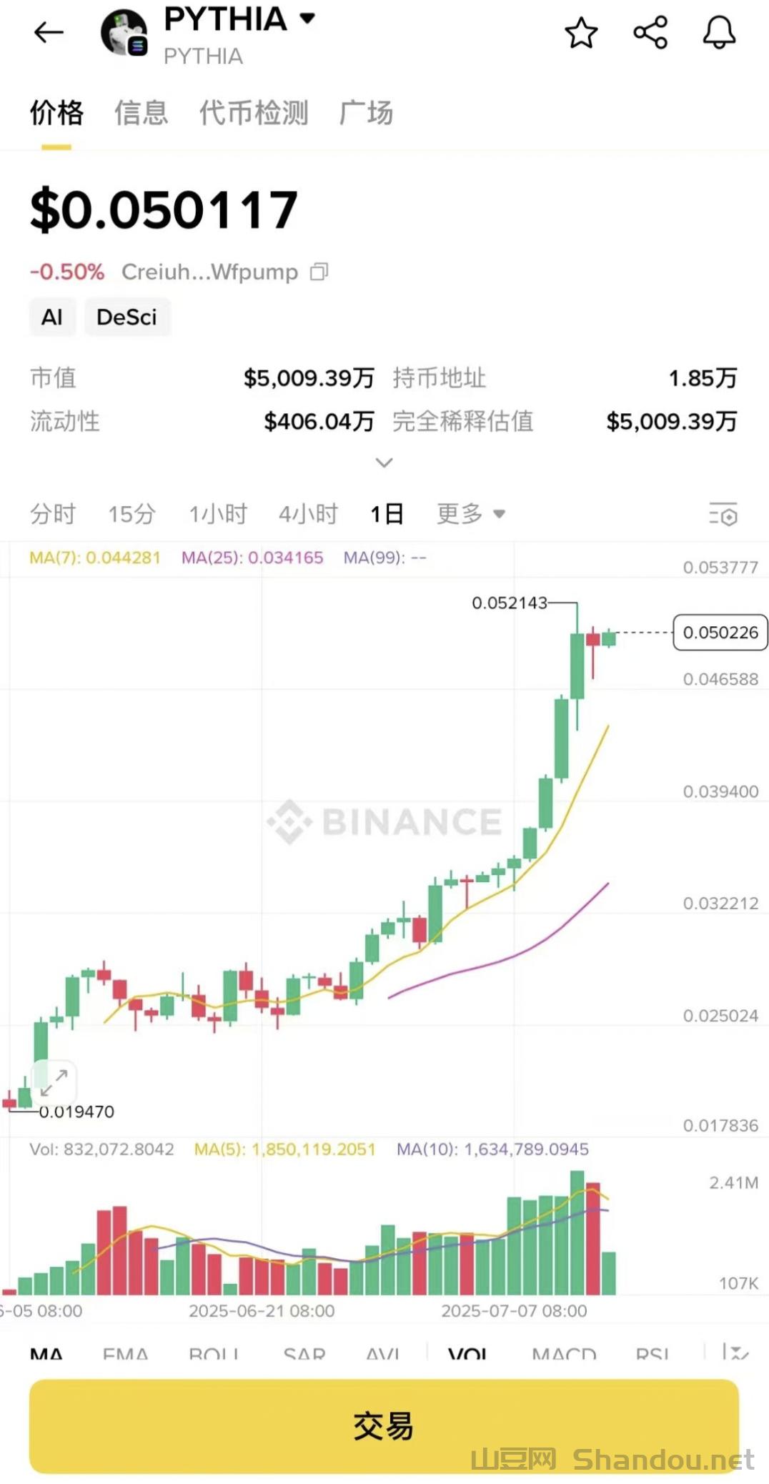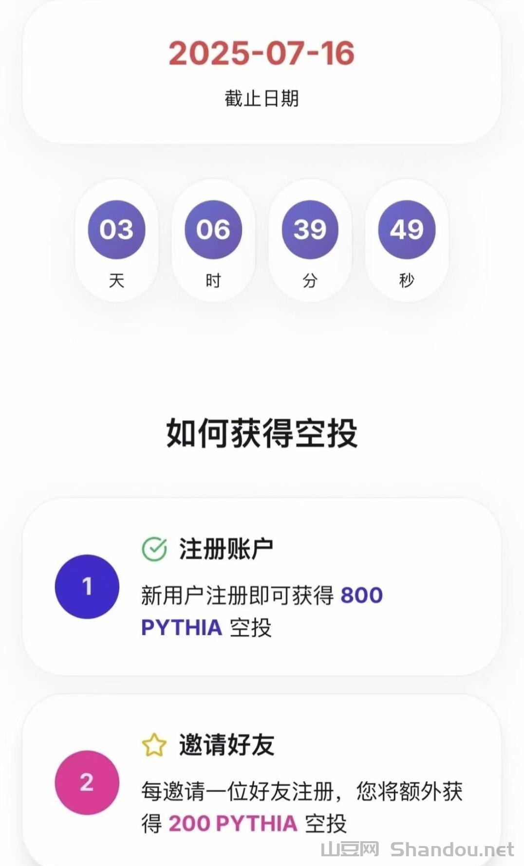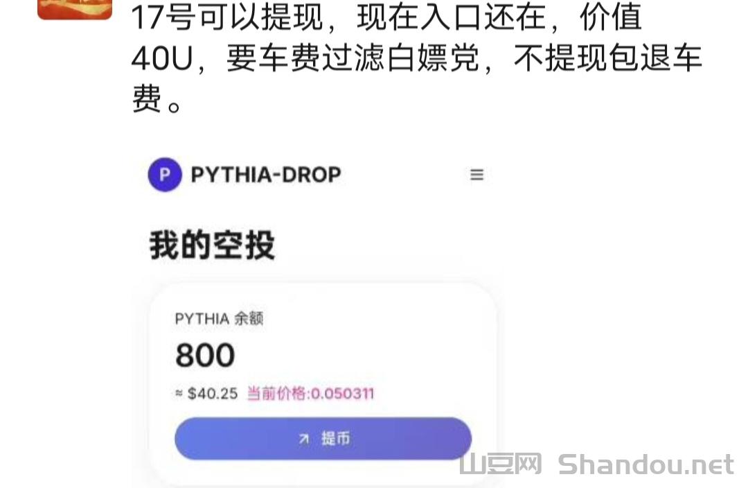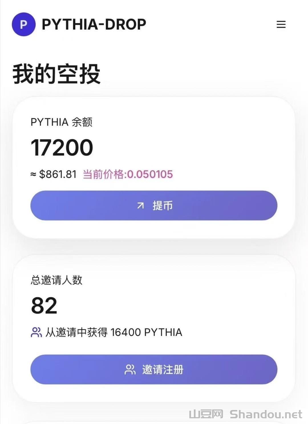 PYTHIA~正在空投,用户登录即送800枚代币,现价0.05USDT/枚,总价值约40USDT!