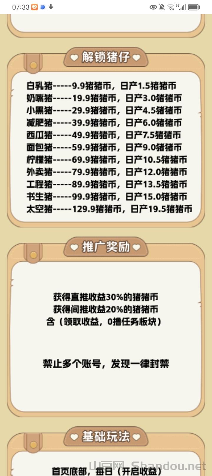 每次完成1任务奖0.5猪币