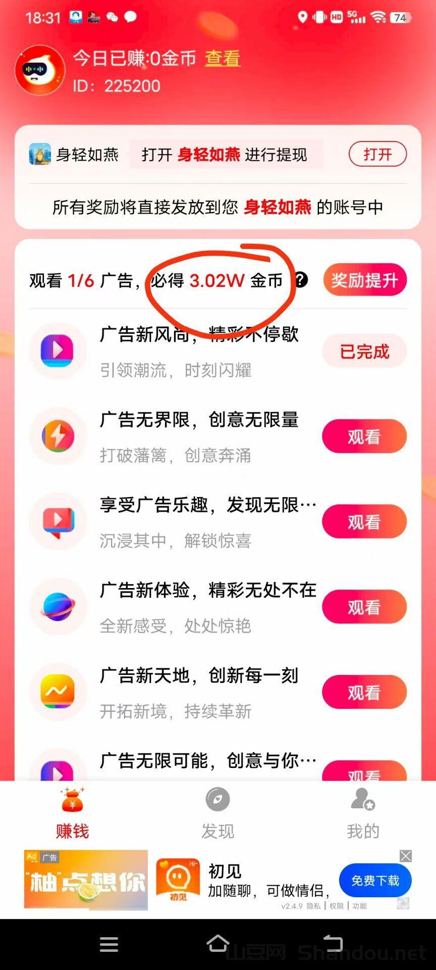 赚钱模块,看广告
