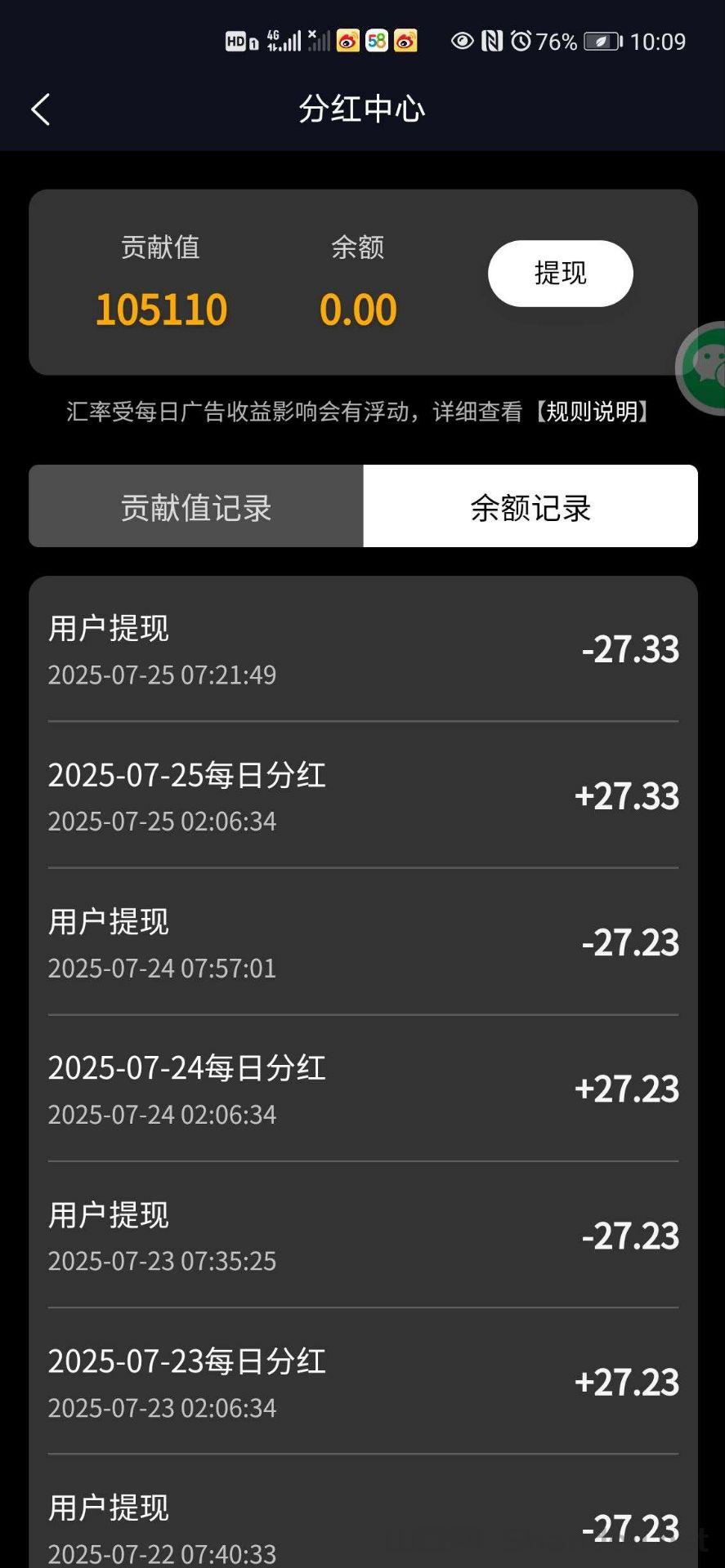 每日根据贡献值芬洪,芬荭后不扣贡献值,永久1米提取极速到!
