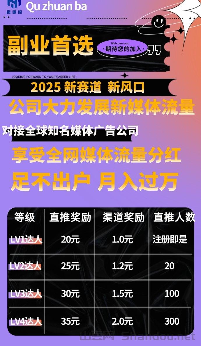 趣赚吧:首码今日上线,注册就送5个趣股,每天看广告浏览得10个趣股,每日可领取媒体流量芬红2米,每日浏览资讯可增加比例,升级媒体代理商,每日可直接兜底领取2米。