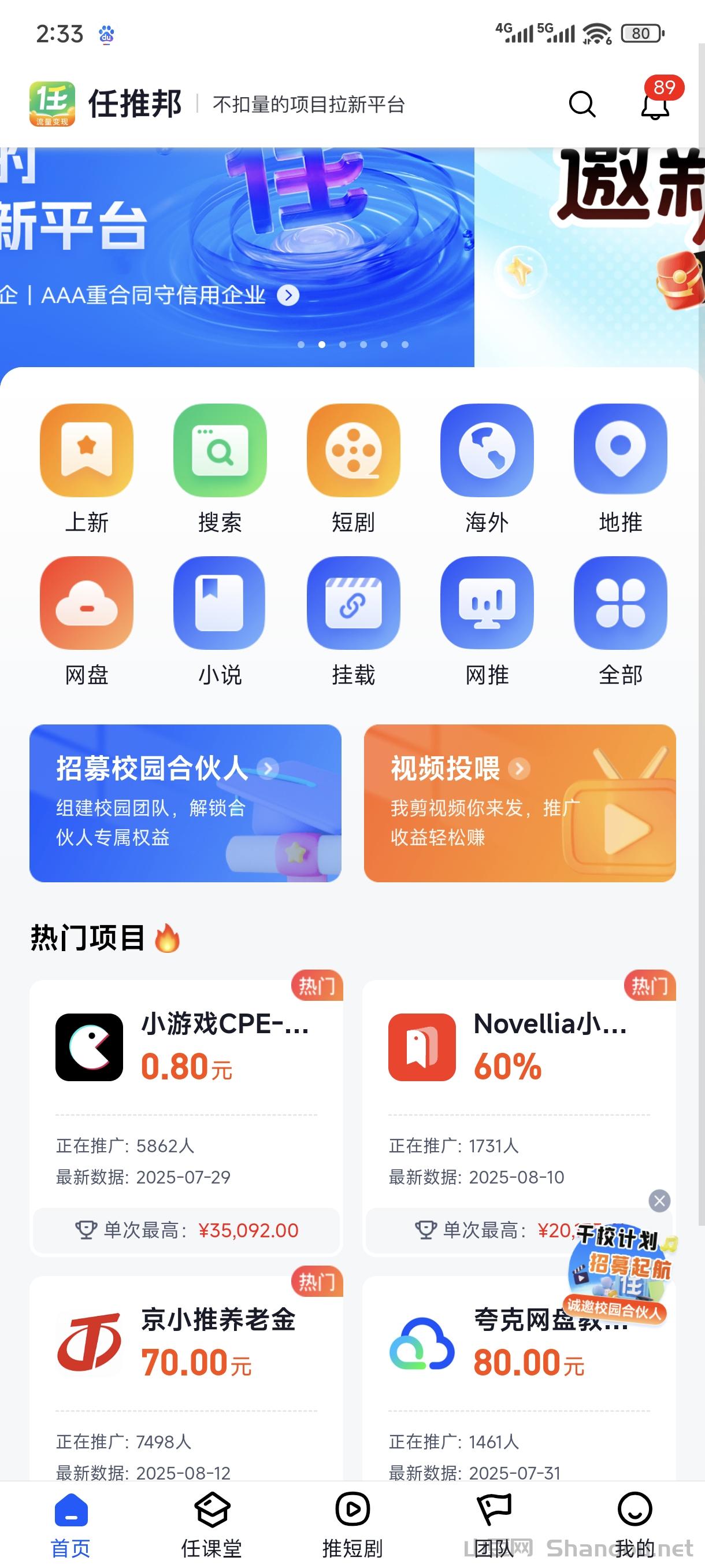 任推邦邀请码906401任推邦邀请码是906401注册输入最高奖它集合了APP项目分发、数据统计、团队裂变、团队管理、佣金发放等功能,目前有20万+推广渠道注册使用,是百度极速版、夸克、UC、悟空浏览器等项目的一级服务商。任推邦助力全国各地大中小型的地推团队解决数据统计、结算稳定、价格优势等问题,致力于帮助更多的地推团队更好的实现地推事业。