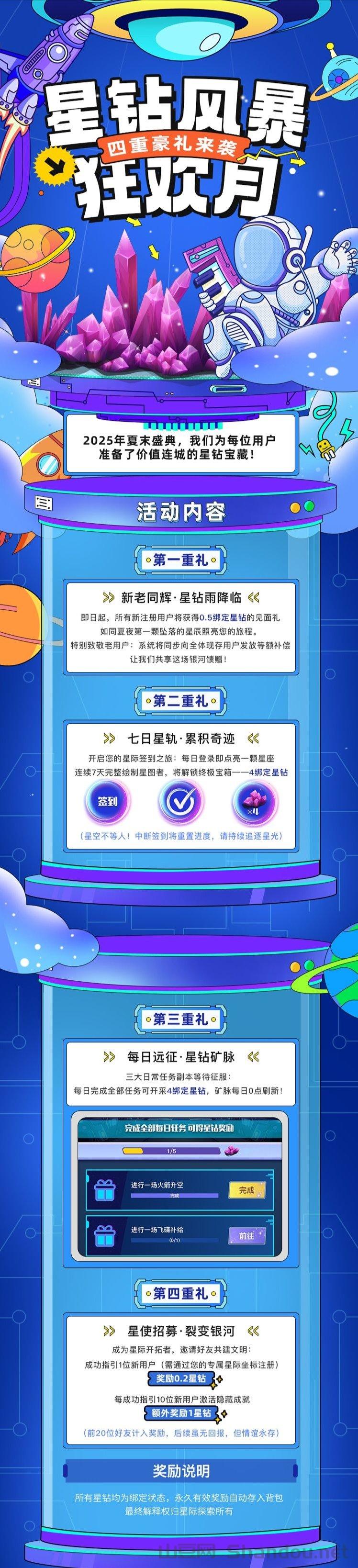 今日首码零撸项目星际探索,每天签到,每一颗星钻3米,必须认准官方群管理群主收出 活动一:活动即日起新注册用户送0.5绑定星钻(同时系统对老用户发送注册补偿0.5星钻); 活动二:每日签到活动开启,连续签到7天自动领取4个绑定星钻; 活动三:每日日常任务活动开启,完成每日任务颗领取4个绑定星钻; 活动四:拉新活动开启,用户每成功邀请一位用户下载APP并绑定用户邀请码注册送0.2个星钻,每满10位用户额外赠送1个绑定星钻,每位用户邀请的前20位用户有奖励,后面无奖励 邀请码:800227