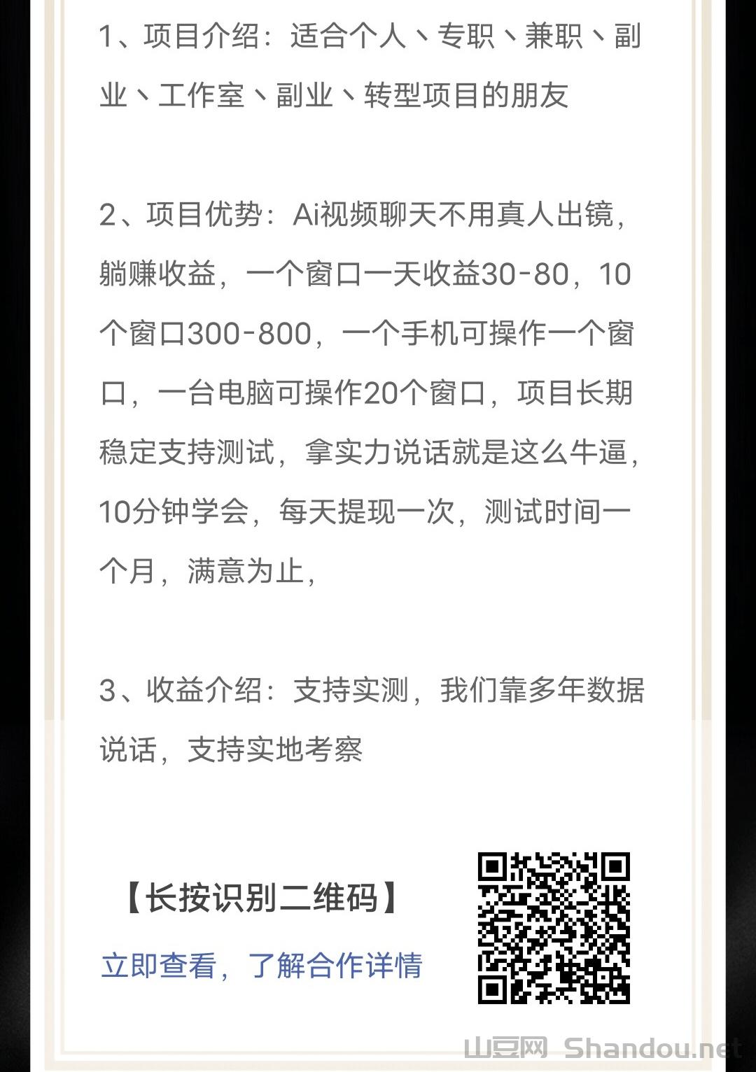 2、项目优势:Ai视频聊天不用真人出镜,躺赚收益,一个窗口一天收益30-80,10