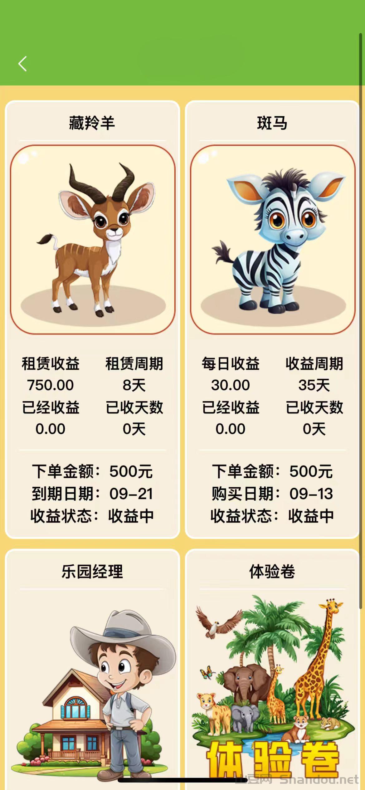 4.长颈鹿 1000元 每日收益65元 收益周期30天 到期收益1950元