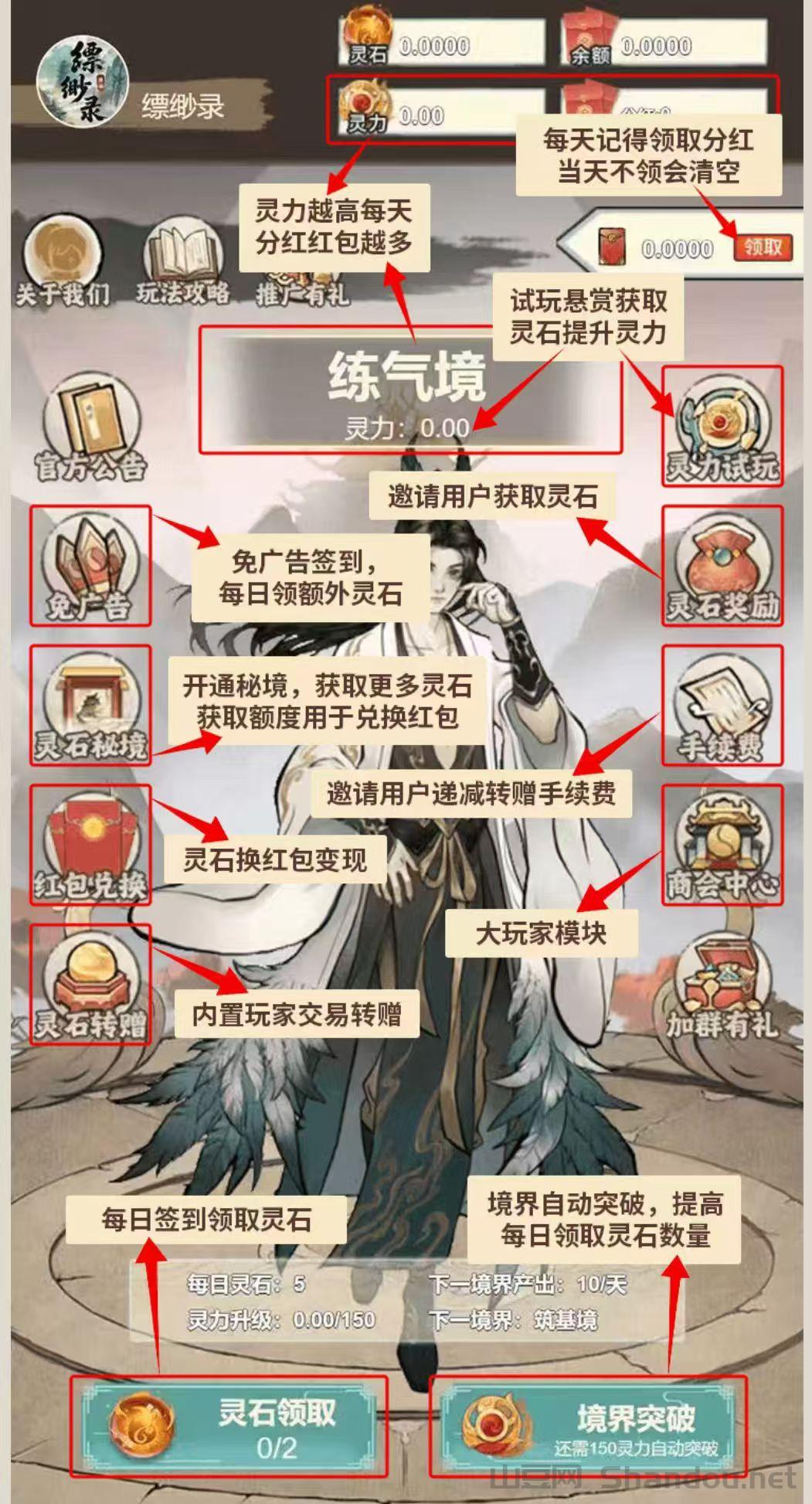 第一步:点击领取灵石,看3个广告,得5灵石