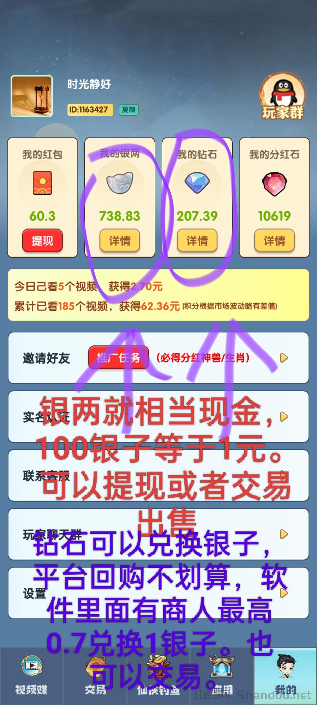 第三:钻石不要让平台回购,软件里面有商人,卖给商人一般0.6-0.7一个钻石,相当于100钻石兑换70银子=7毛