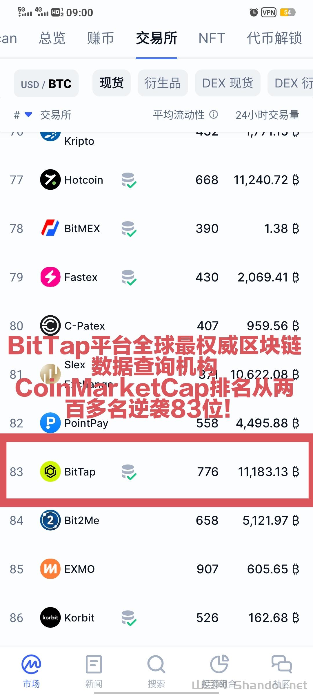 [强]见过逆袭最快的交易所吗?BitTap最新非小号排名19位,从无到有,从大几十名次一路逆袭,据强的有的不可思议,双C排83可查数据A级,距离头部抹茶,芝麻GATE平台仅有几个身位只差!
