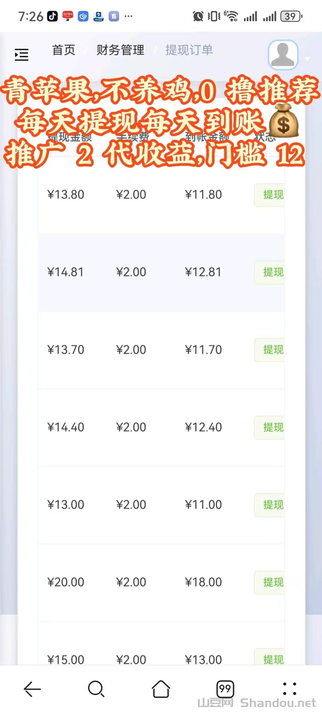 12米后提现是银行卡,建议:整两个手机刷因为一个ip只能供两台手机刷。只能安卓玩。