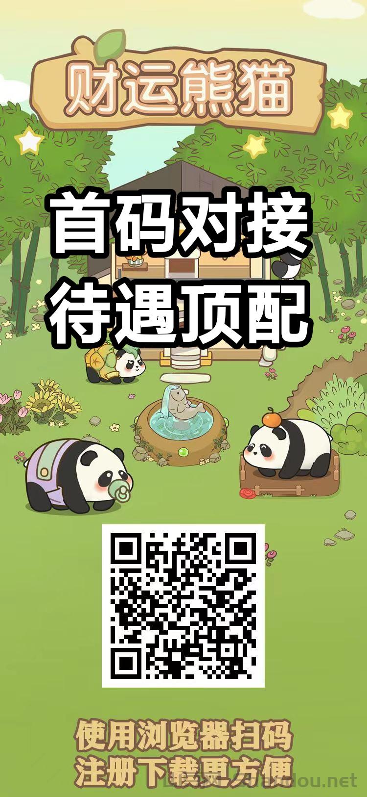 财运熊猫首码正式上线啦,全新萌宠养成类游戏模式,保底收益高,熊猫每天都能自动产出钻石,拥有的熊猫越多,产出的钻石越多,目前一钻=1元,另外每直推一位好友得15钻奖励,只需1米极速提,抢先首码先吃肉。