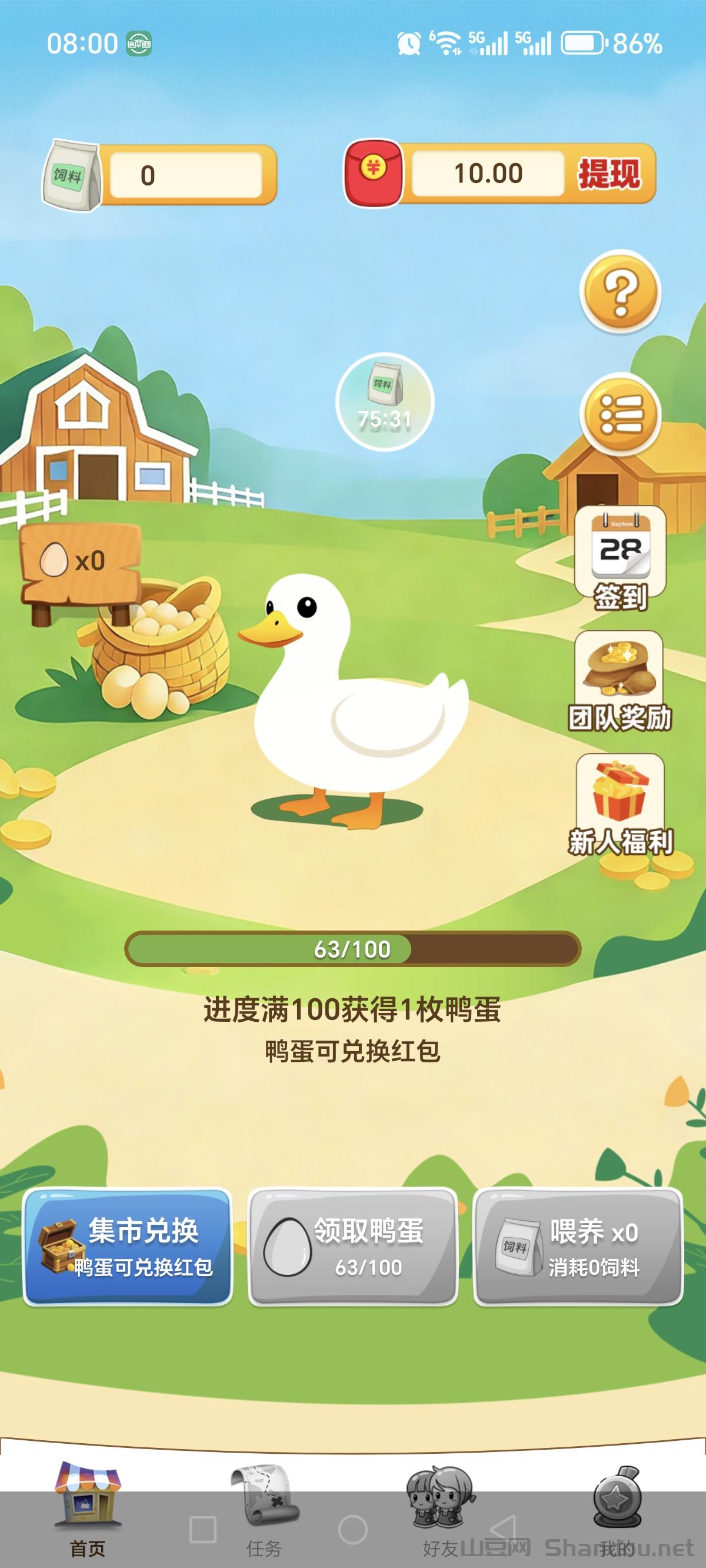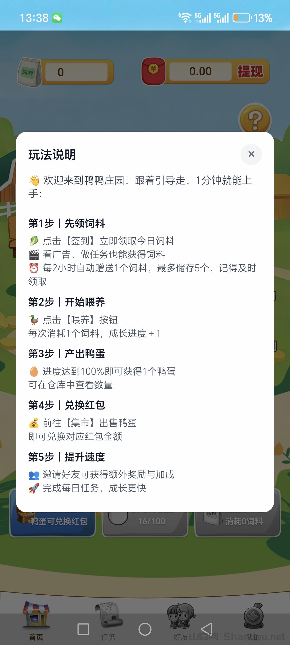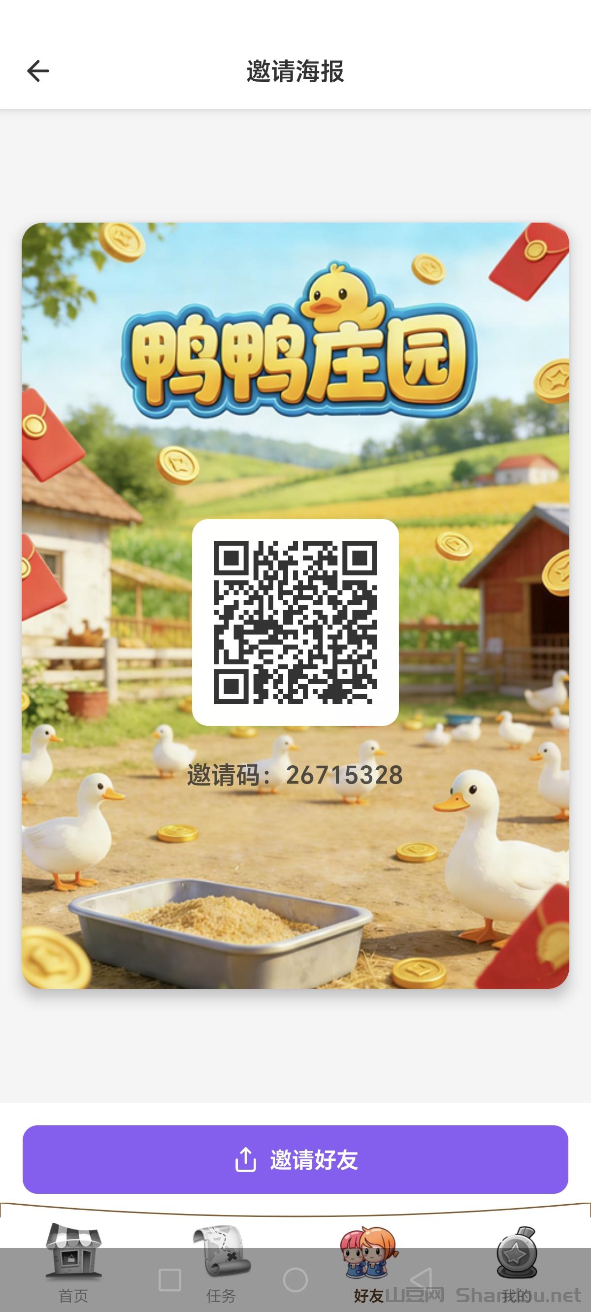 今日首码鸭鸭庄园刚刚上线,零投资养鸭赚钱,看广告,邀请好友可得饲料,饲料喂鸭,鸭产鸭蛋,进度条满可得一个鸭蛋。一个鸭蛋十元兑换完即可提现赶紧占位,拉新福利满满,下级也能给你反饲料!有能力的赶紧冲