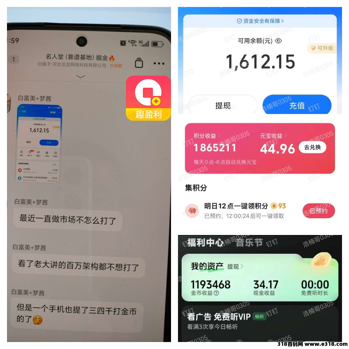 【趣盈利APP】己上线第287天,线下实体公司己运营6年,主打高价绿色任务和快抖系广告变现,长期可做。