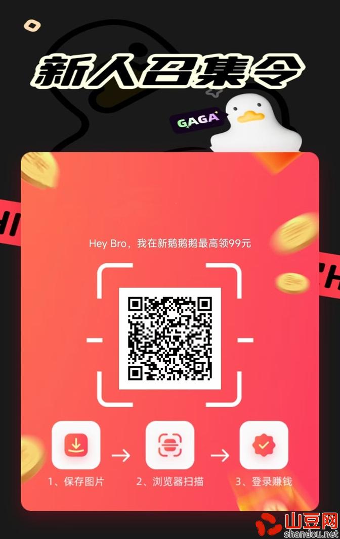 新鹅鹅鹅推广拉新收益也很不错,可以分享链接推广新用户,只要新用户通过链接下载APP看广告,你就可以获得广告分成。