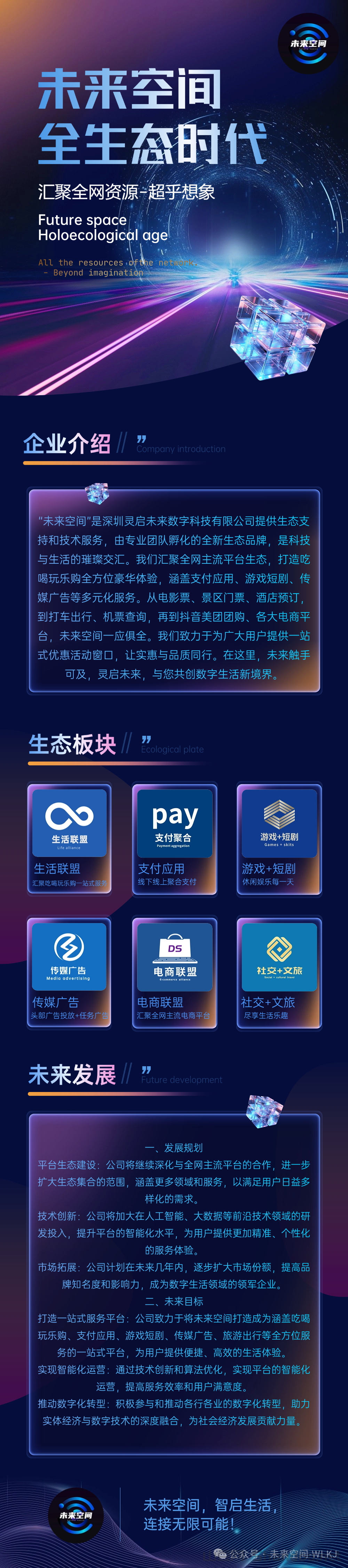 "未来空间"是深圳灵启未来数字科技有限公司提供生态支持和技术服务,由砖业团队孵化的荃新生态品牌,是科技与生活的璀璨交汇。我们汇聚quan网主流平台生态,打造吃喝玩乐购全方位豪华体验,涵盖支付应用、游戏短剧、传媒广gao等多元化服务。从电影票、景区门票、酒店预订 到打车出行、机票查询,再到抖音美团团购、各大电商平台,未来空间一应俱全。致力于为广大用户提供一站式优惠活动窗口,让实惠与品质同行。在这里,未来触手可及,灵启未来,与您共创数字生活新境界。