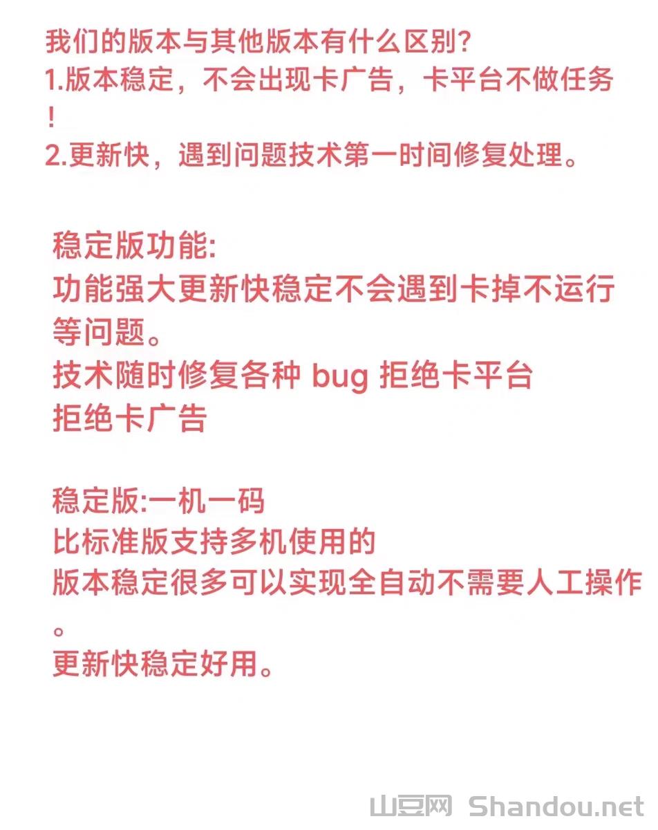 1.版本稳定,不会出现卡广告,卡平台不做任务;