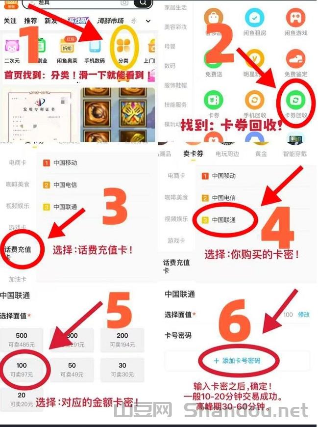 进入闲鱼app,没有闲鱼的应用商店下载一个,在首页找到【分类],进入【卡券回收],选择【话费充值卡],选择对应的