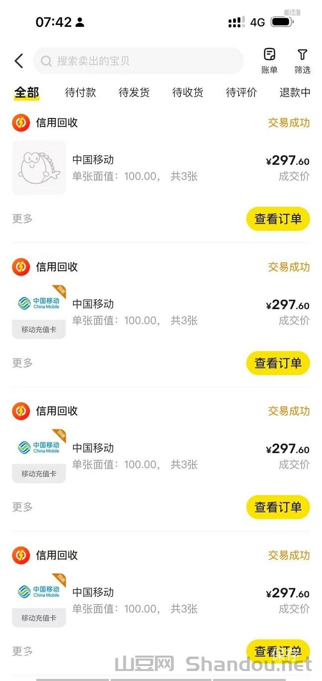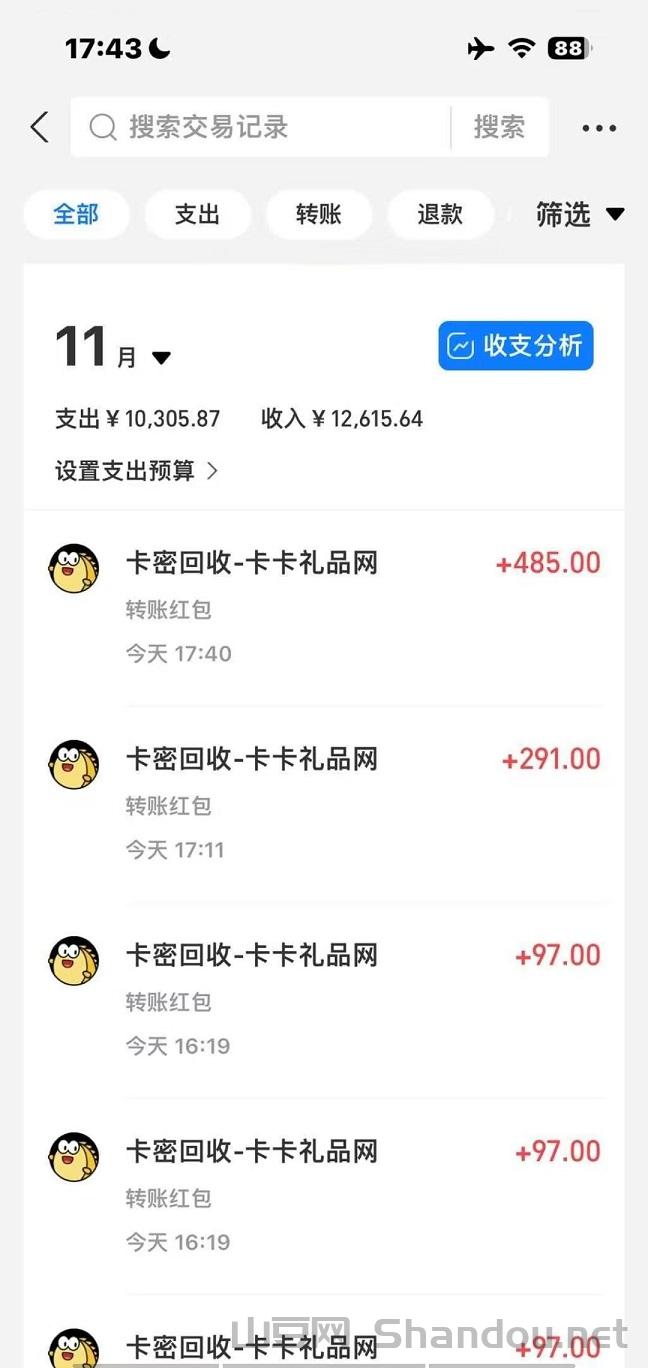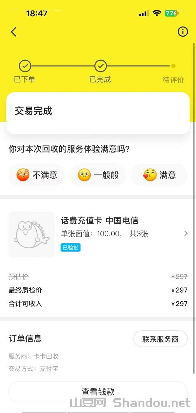 服务商提交卡号+卡密回收,只需要几分钟闲鱼官方打款到支付宝98元,利润13元一张,每个闲鱼号回收日限额5000,