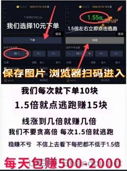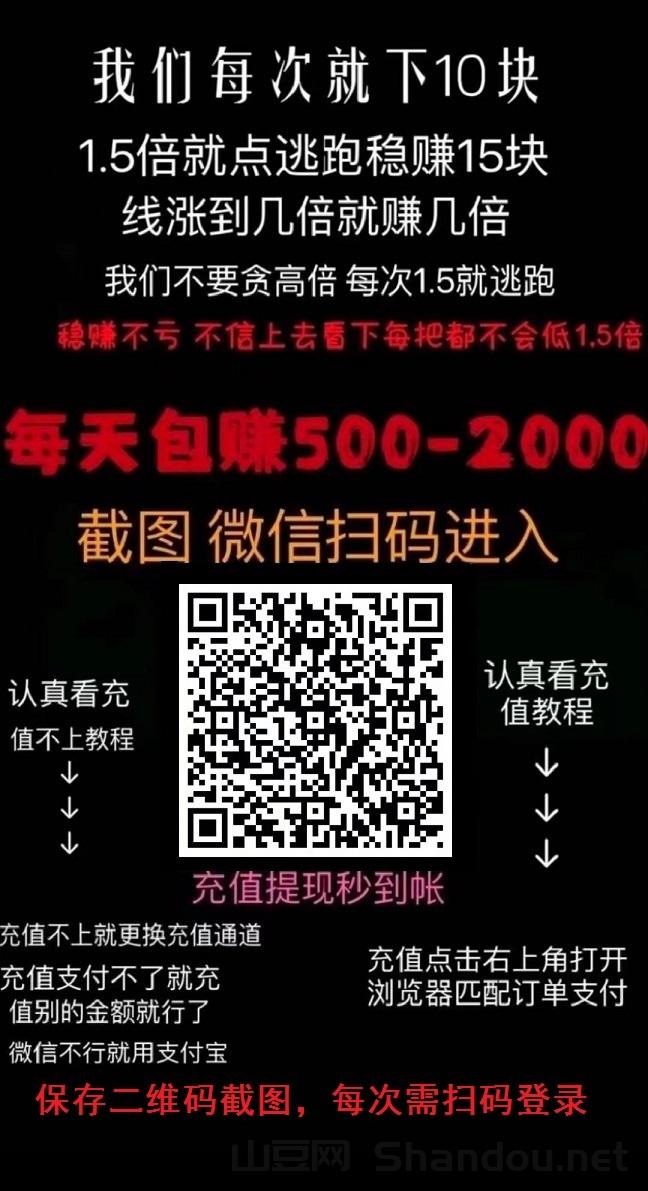 第一次可以先玩10元试试水,1.5倍左右逃跑,后面50一次,一天轻松赚个1000+不是问题!微信支付宝皆