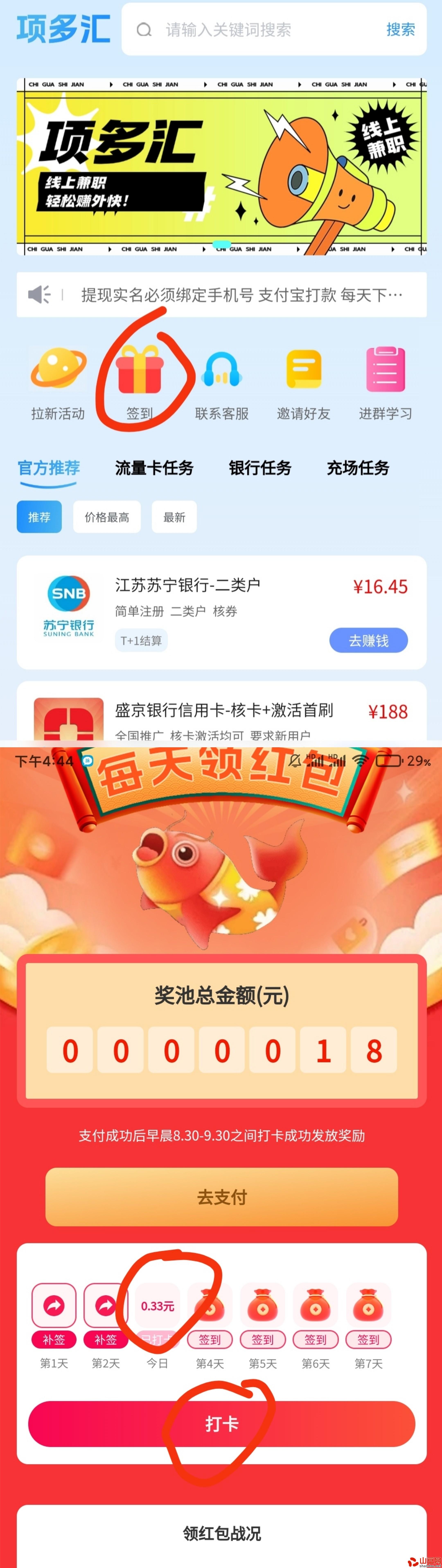 项多汇免费撸,扫码注册每天签到打卡领取现金,不看广告,1元起提