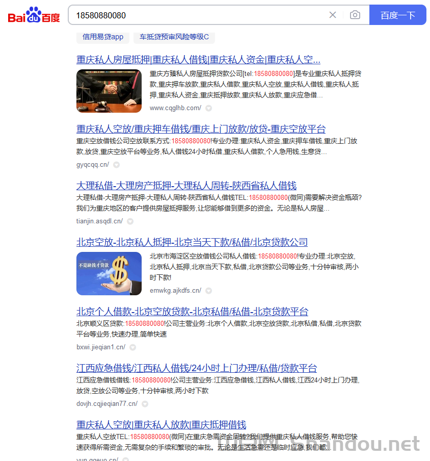 比如百度搜索电话号码:18580880080