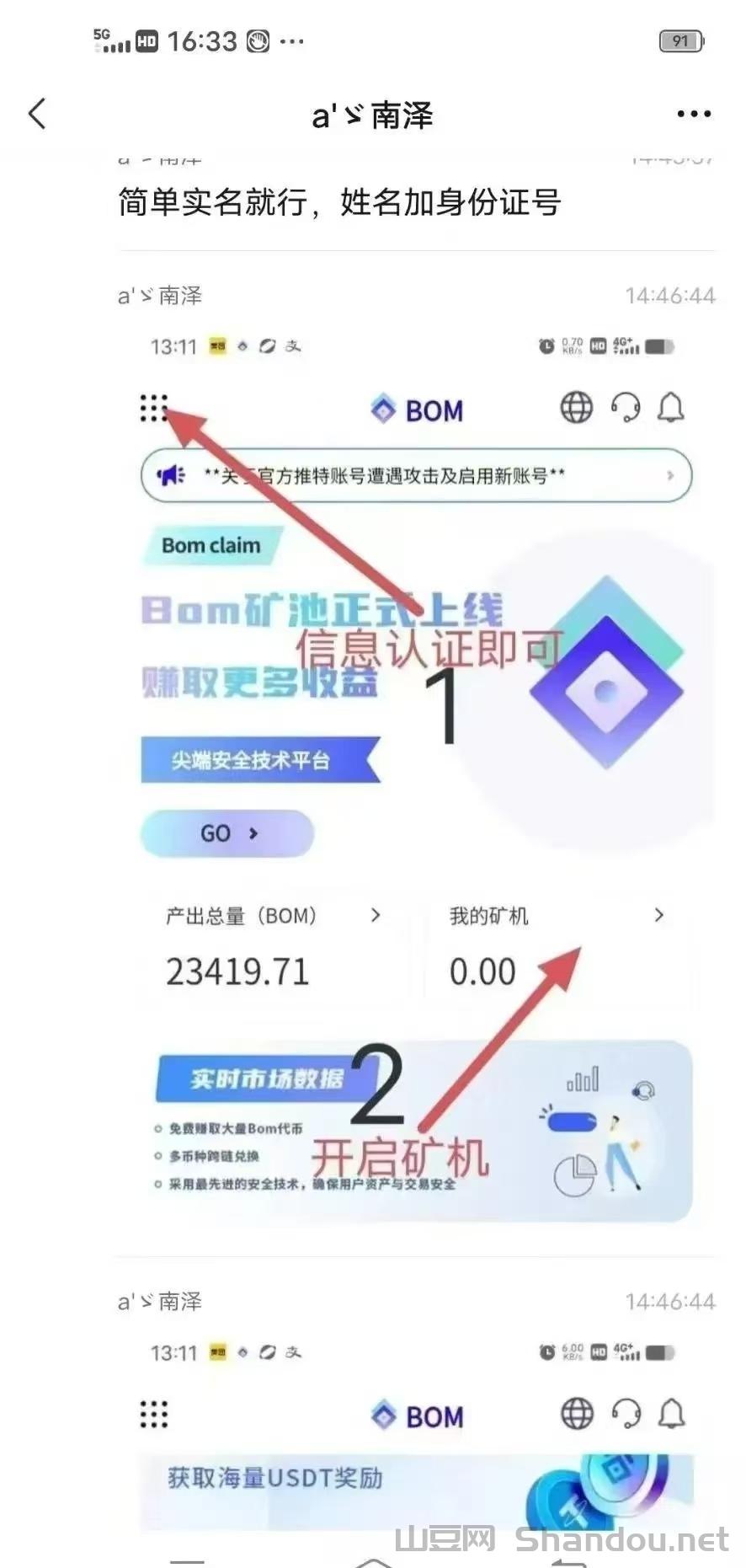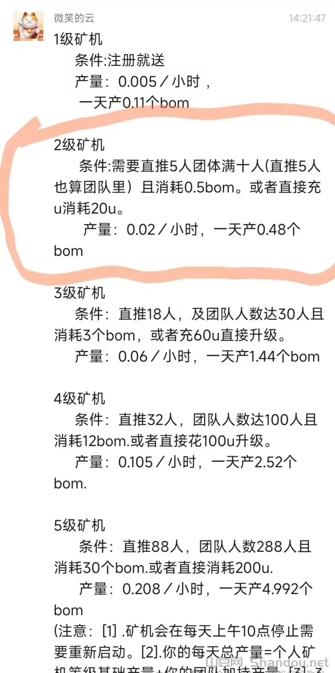 注测成功后,平台会赠送一台初始机。别小看这台初始机,它每天大概能挖 0.1 枚左右的代币。而蕞高等级机每天能挖 5 枚,虽然目前数量看起来不算多,但要知道 BOM 的总量仅 1000 万枚,并且初始价咯就高达 10U 一枚,而且所有代币全部通过挖旷产出,每个季度还会进行减半减产,这种通缩机制将不断提升代币的烯缺性和价直。